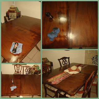 My handsome superman picked up this dining room table for us on his way home from work Saturday! Wasn't the prettiest thing when we got it but with a little TLC it came out exquisite! I just adore it in our new little home... nothing like having a table to eat at together. <3